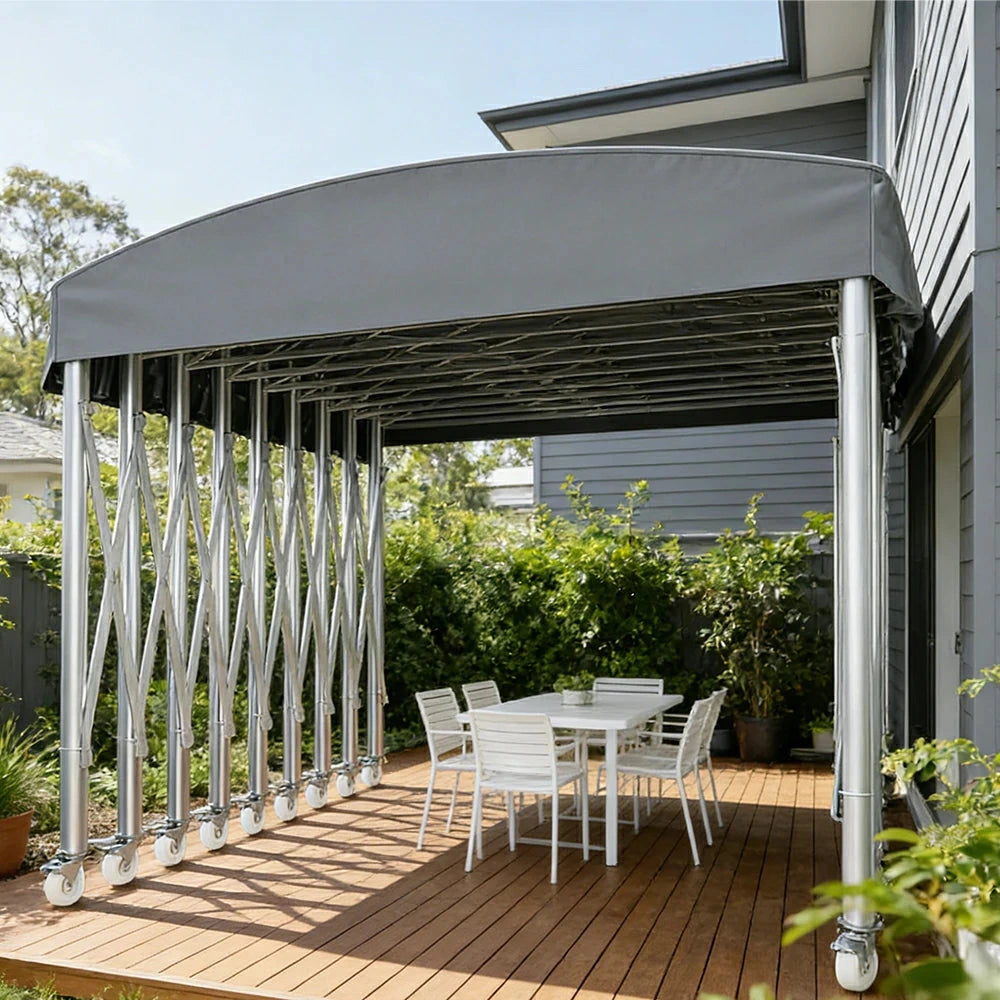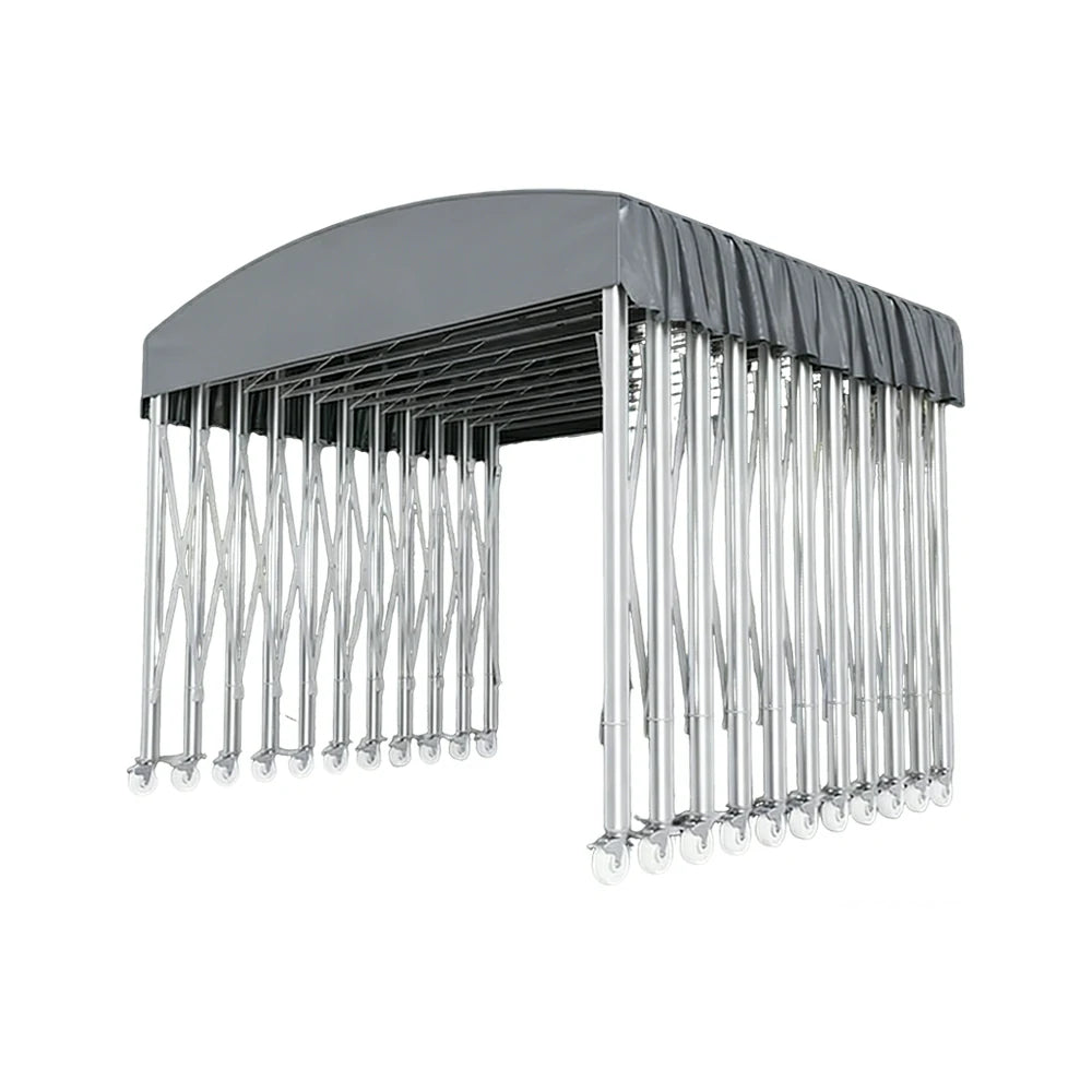 TREKKA Outdoor Retractable Canopy Tent - 5/7/8m Heavy-Duty Telescopic Frame with Lockable Wheels, Waterproof & UV-Resistant Fabric, Space-Saving Design - Grey