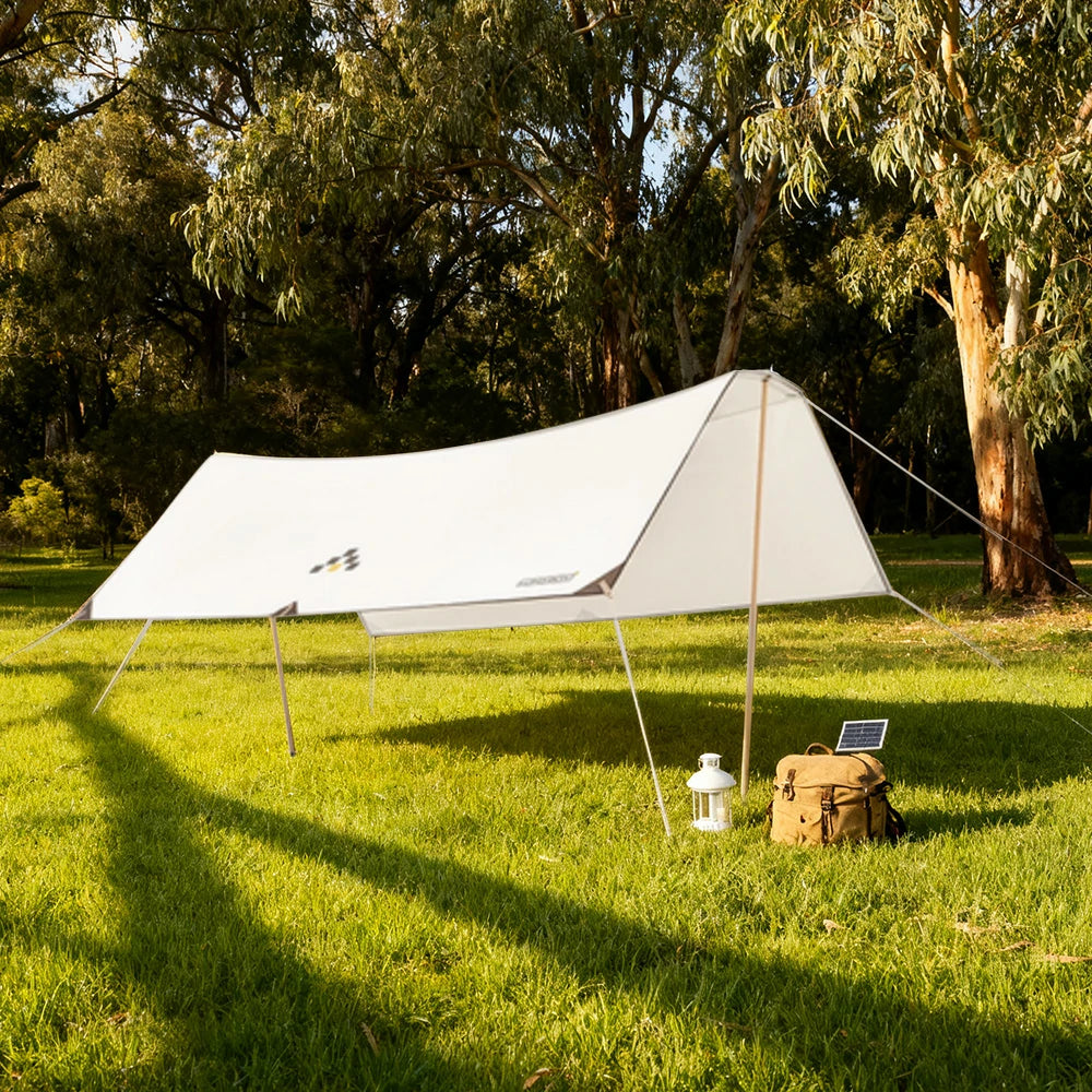 TREKKA 15 Square Meter Silver-Coated T-Wing Canopy - UPF50 Plus Sun Protection, 2.1m High Poles, Tear-Resistant 210D Oxford Shade Shelter - Beige