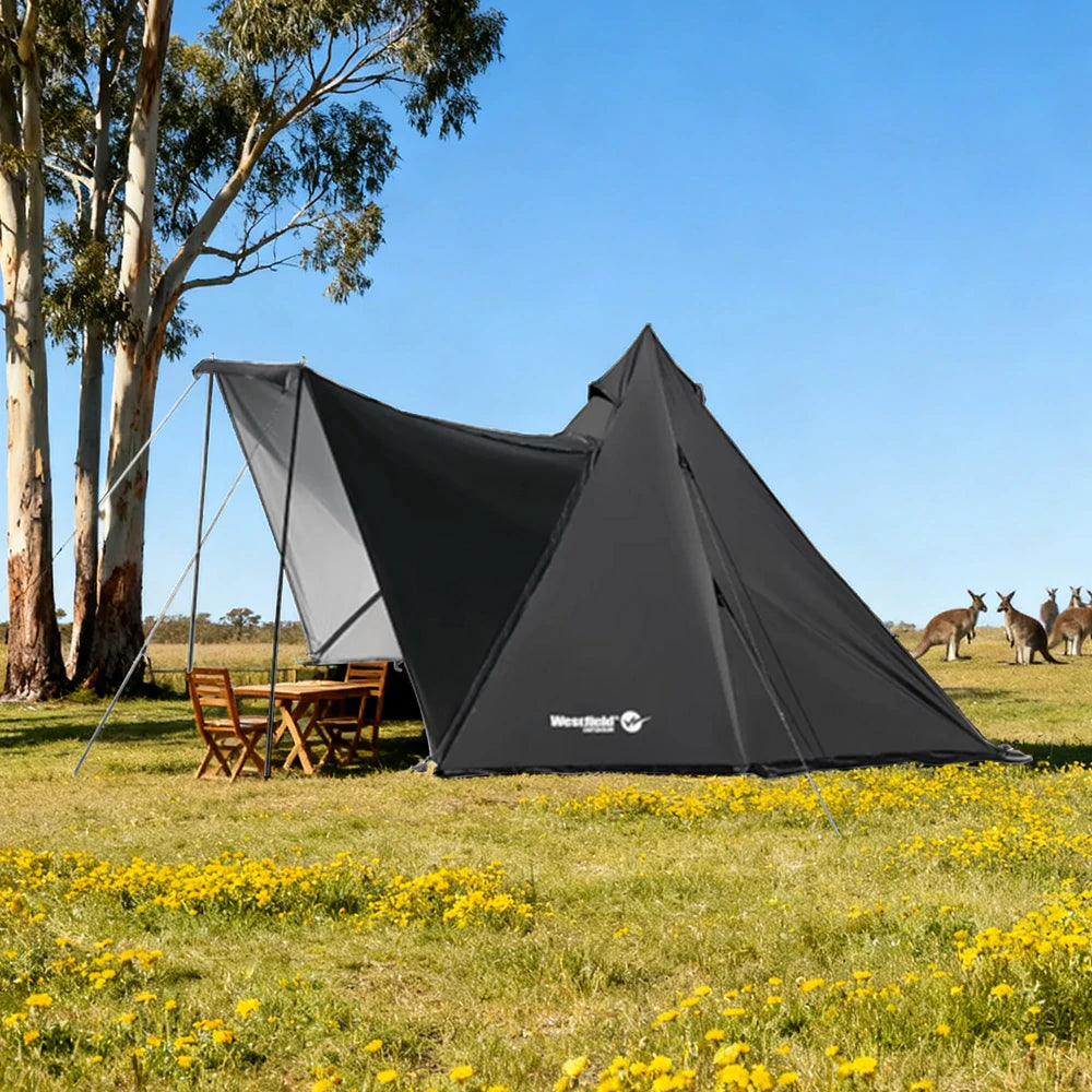 TREKKA Pole-Free Pyramid Camping Tent with Silver-Coated Fabric - Spacious Interior, Sun & Rain Protection, Multi-Setup Shelter - Silver