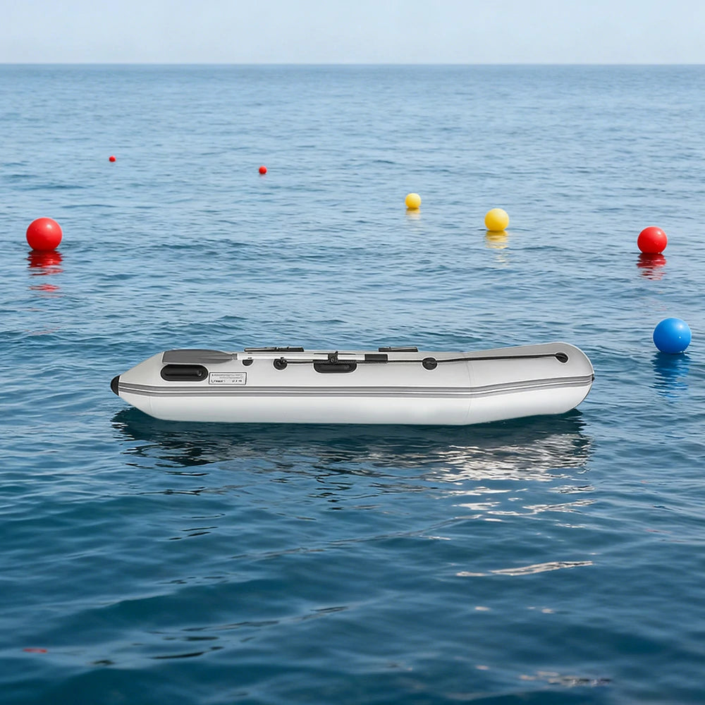 TREKKA 330cm Inflatable Kayak Durable PVC Construction Multi-Chamber Design Quick-Drain Valve Ideal for Fishing & Recreation - Grey