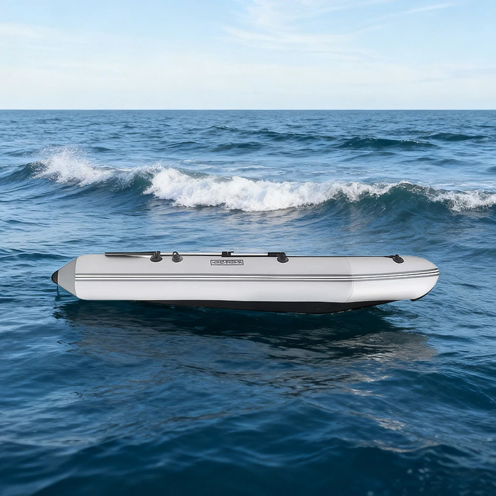 TREKKA 380cm Inflatable Kayak Durable PVC Construction Multi-Chamber Design Quick-Drain Valve Ideal for Fishing & Recreation - Grey