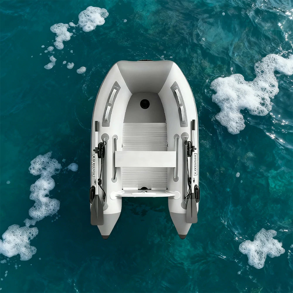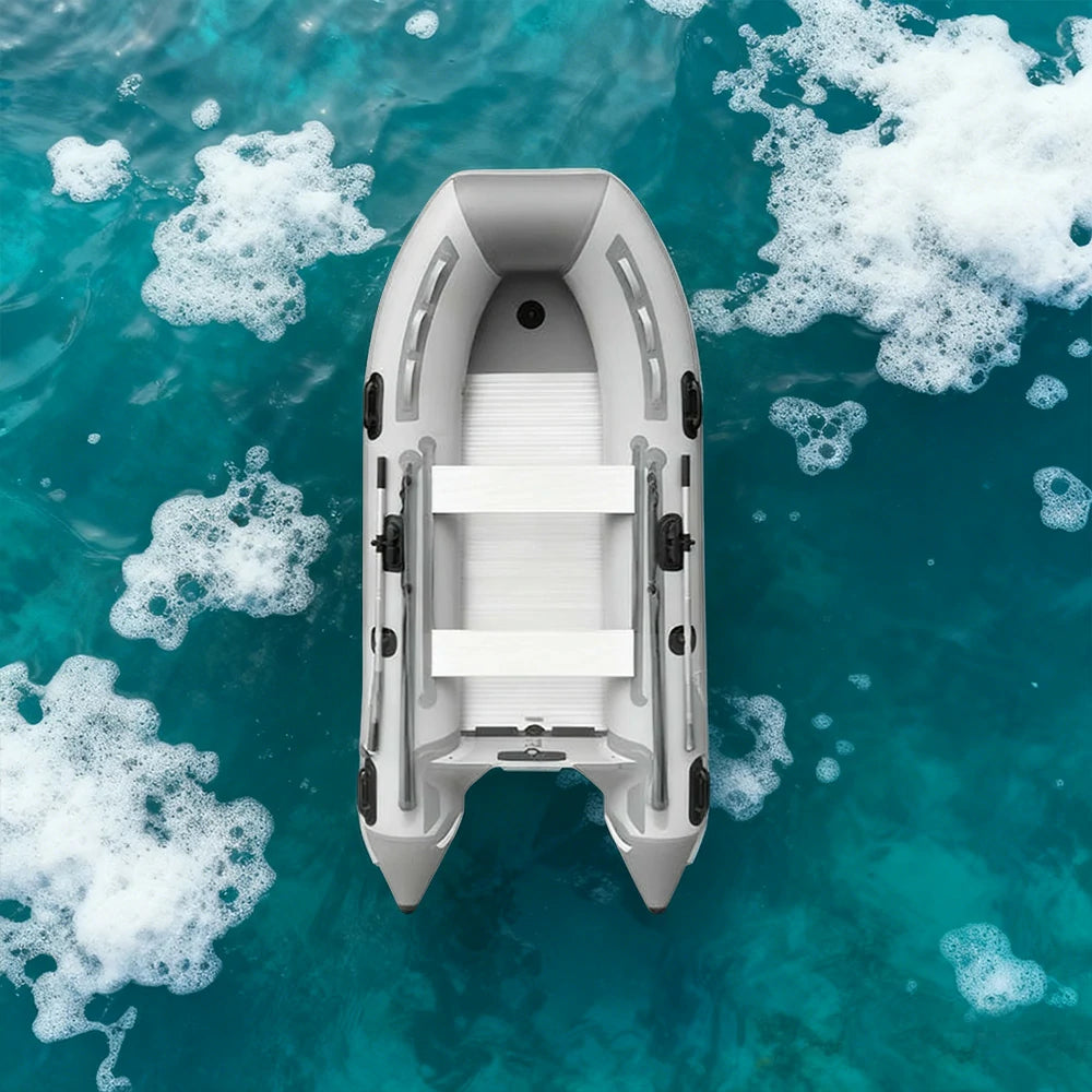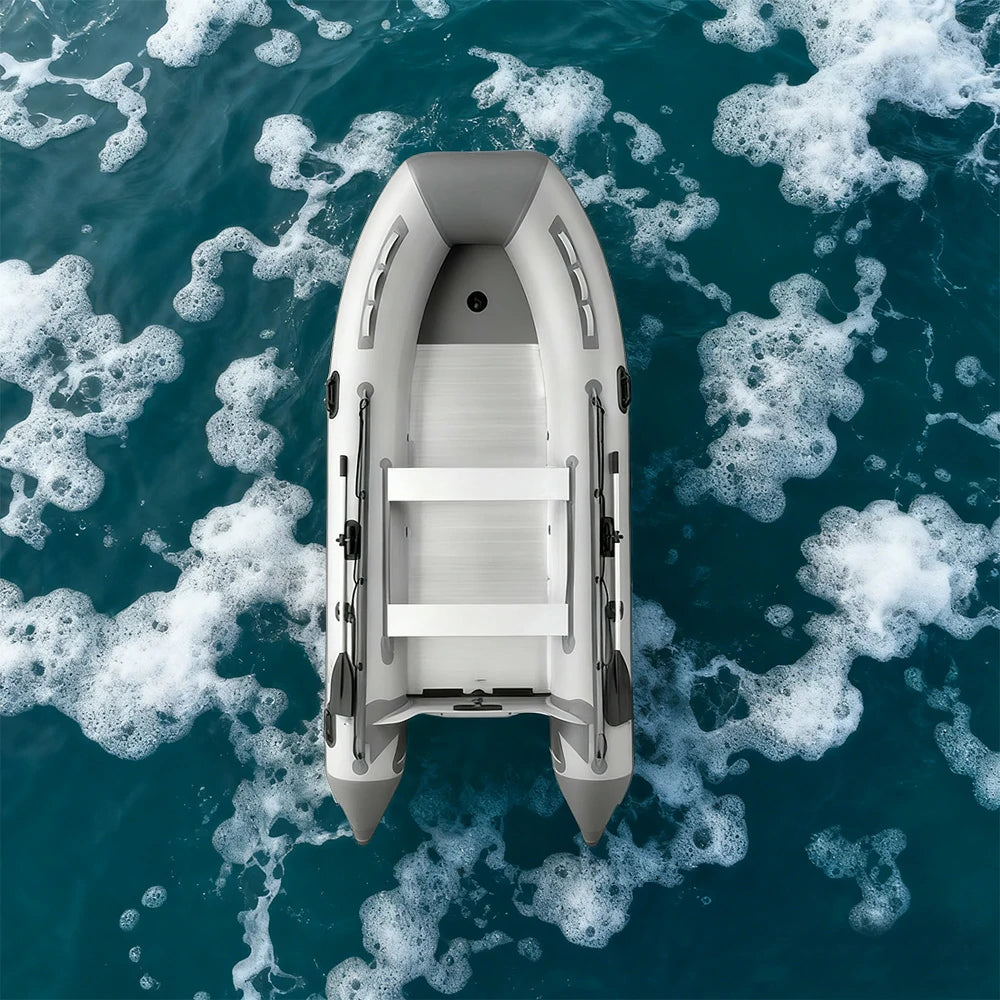 TREKKA 230/330/430cm Inflatable Kayak Durable PVC Construction Multi-Chamber Design Quick-Drain Valve Ideal for Fishing & Recreation - Grey