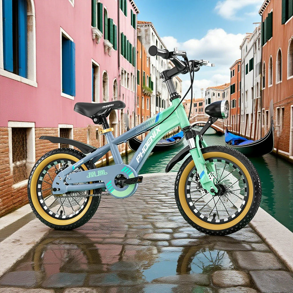 VOLTUS 14/18/22 Inch Children's Bicycle Foot Support & Training Wheels Magnesium Alloy Integrated Wheel CNC Double-Layer Knife Ring - Grey&Green