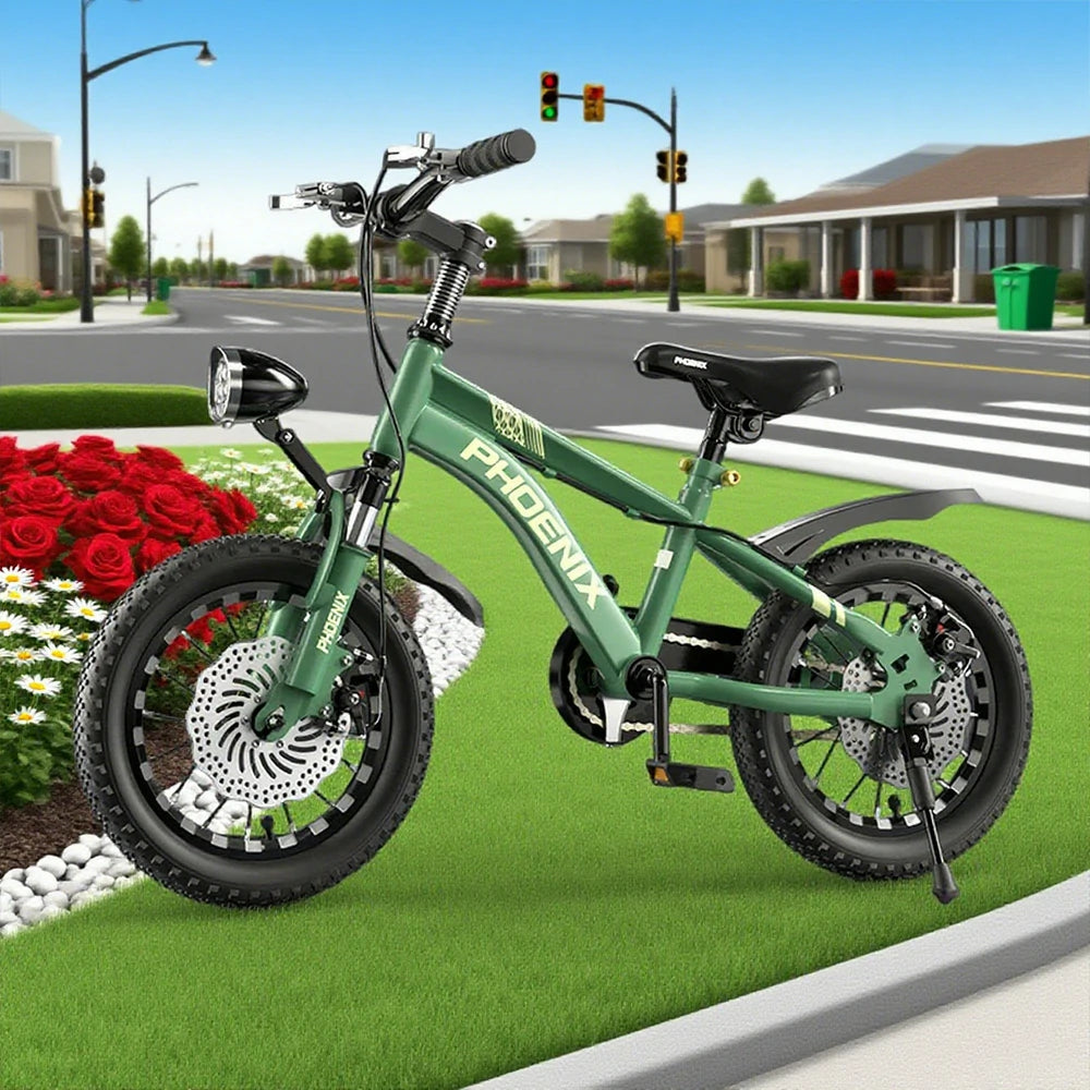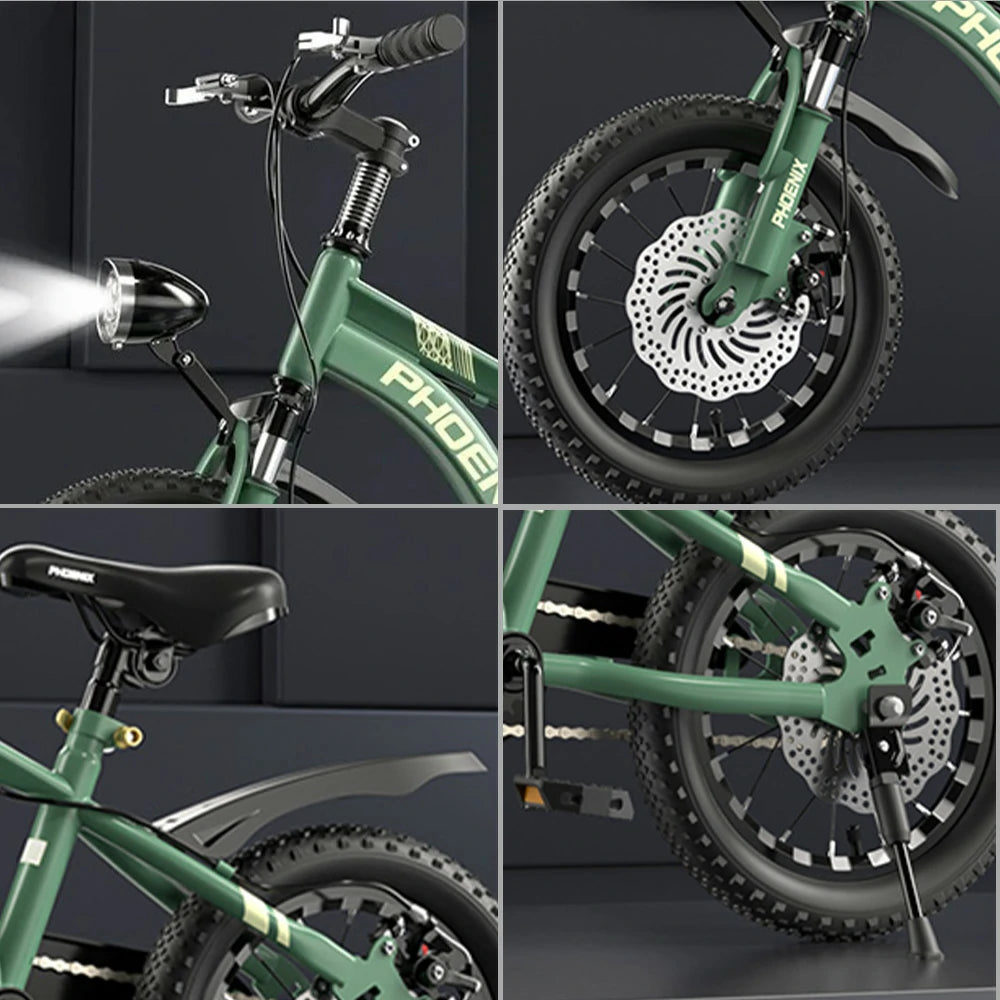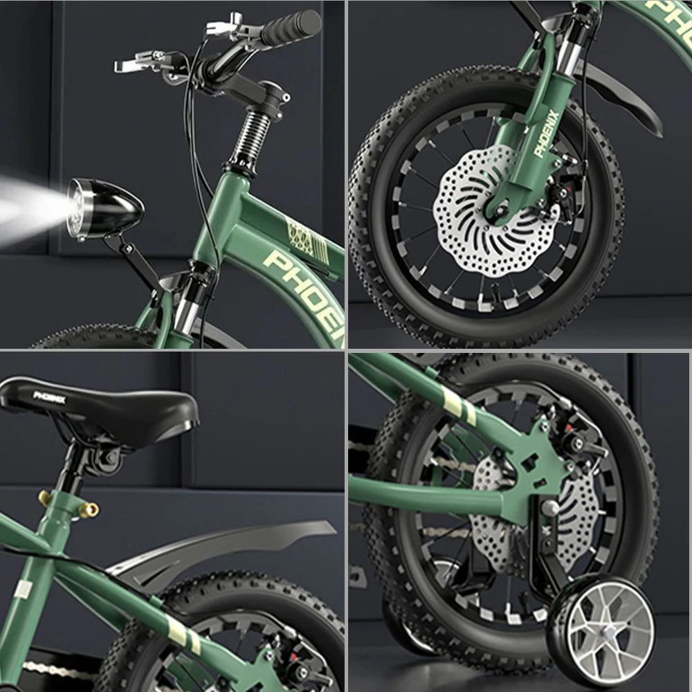 VOLTUS 14/18/22 Inch Children's Bicycle Foot Support & Training Wheels CNC Double-Layer Knife Ring - Green