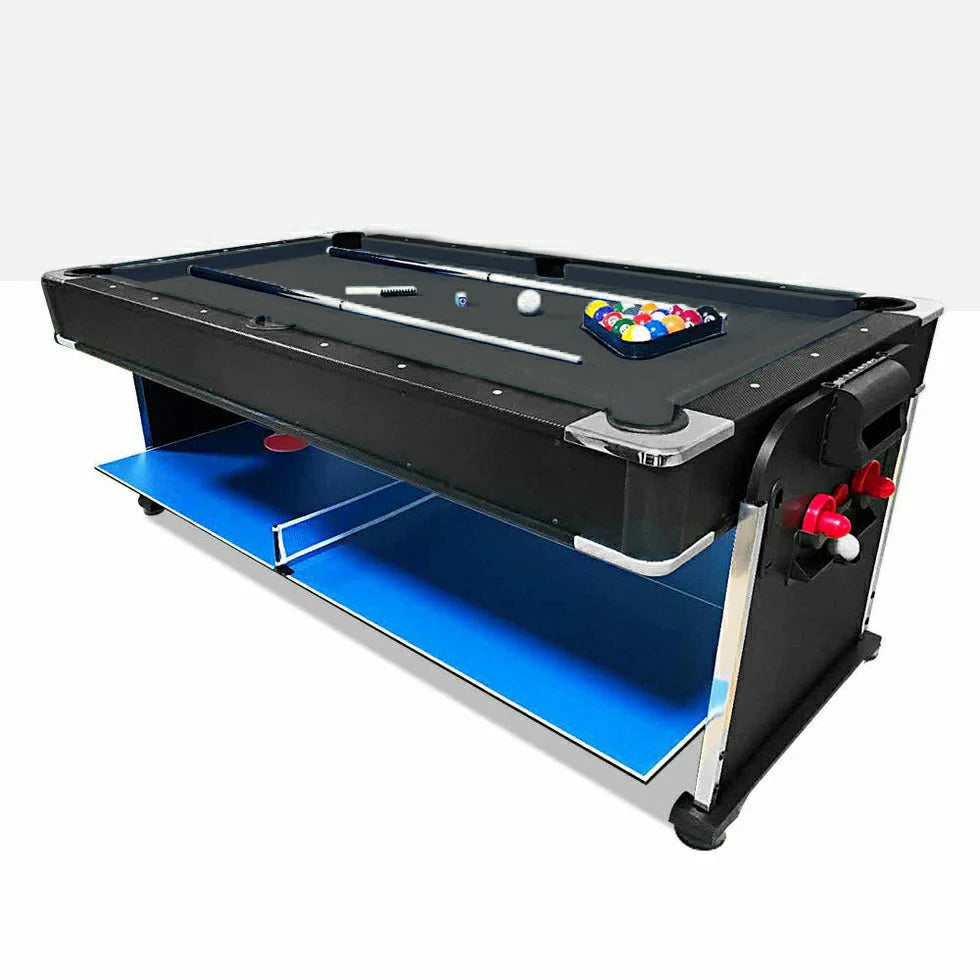 VERSA 4-IN-1 6FT Convertible Game Table - Air Hockey, Pool, Table Tennis & Dining, Space-Saving Black Frame, Free Accessories - Black Felt