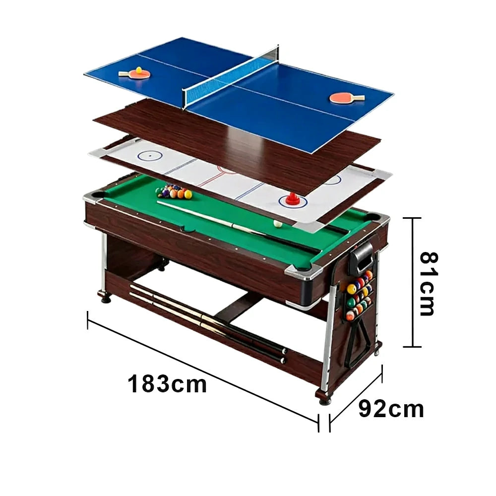 VERSA 4-IN-1 6FT Convertible Game Table - Air Hockey, Pool, Table Tennis & Dining, Space-Saving Brown Frame, Free Accessories - Green Felt