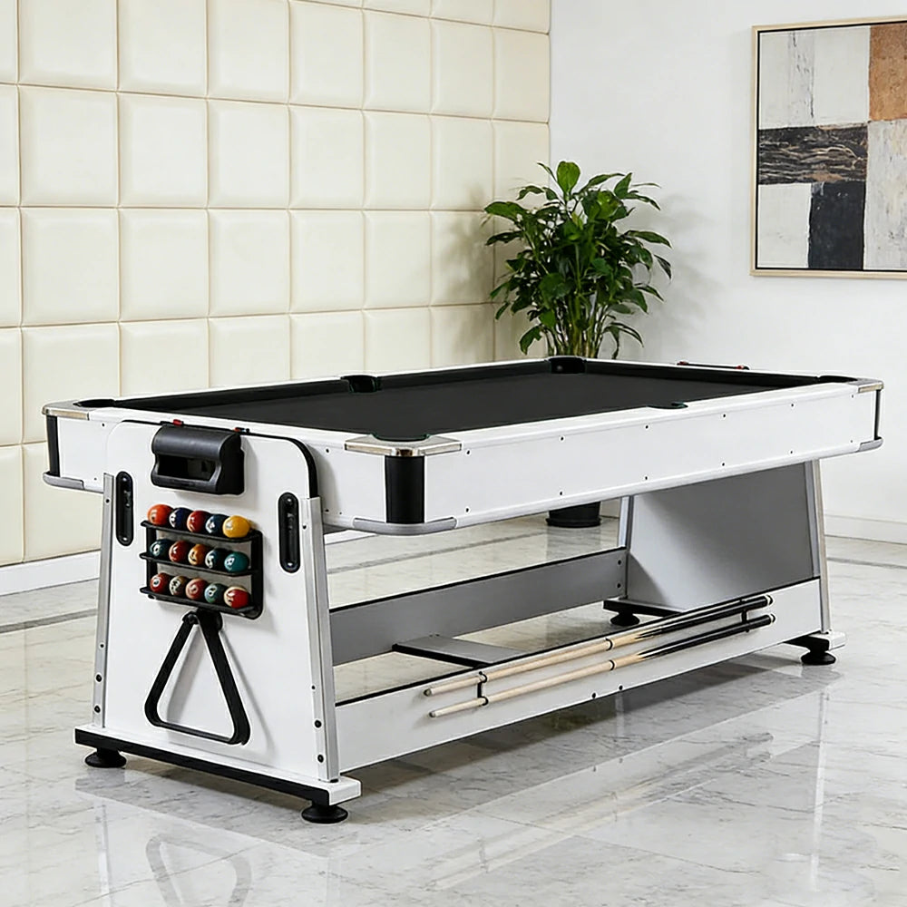 VERSA NEW 2026 UPGRADE MODEL 4-IN-1 6FT Convertible Game Table – Air Hockey, Pool, Table Tennis & Dining, Space-Saving White Frame, Free Accessories - Black Felt