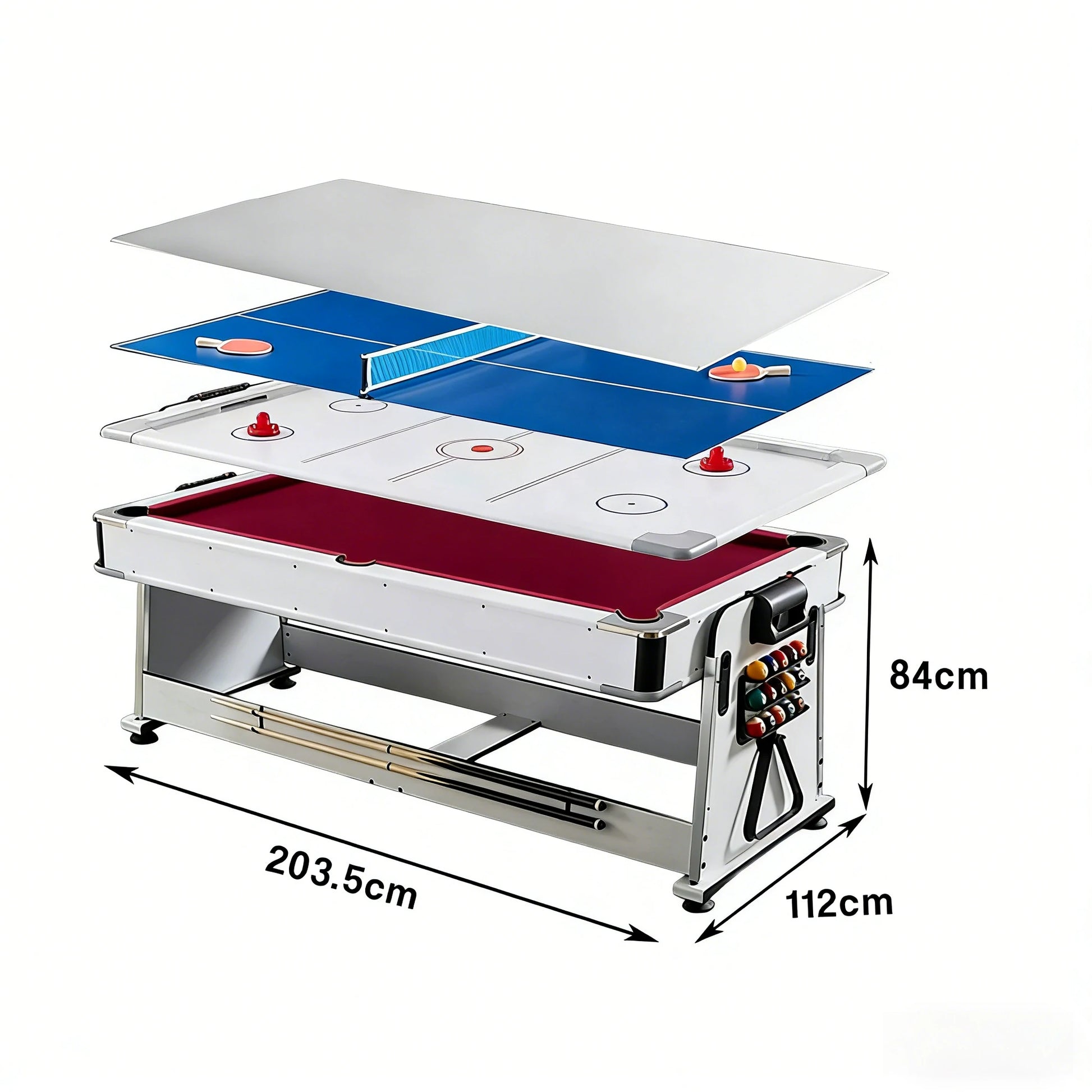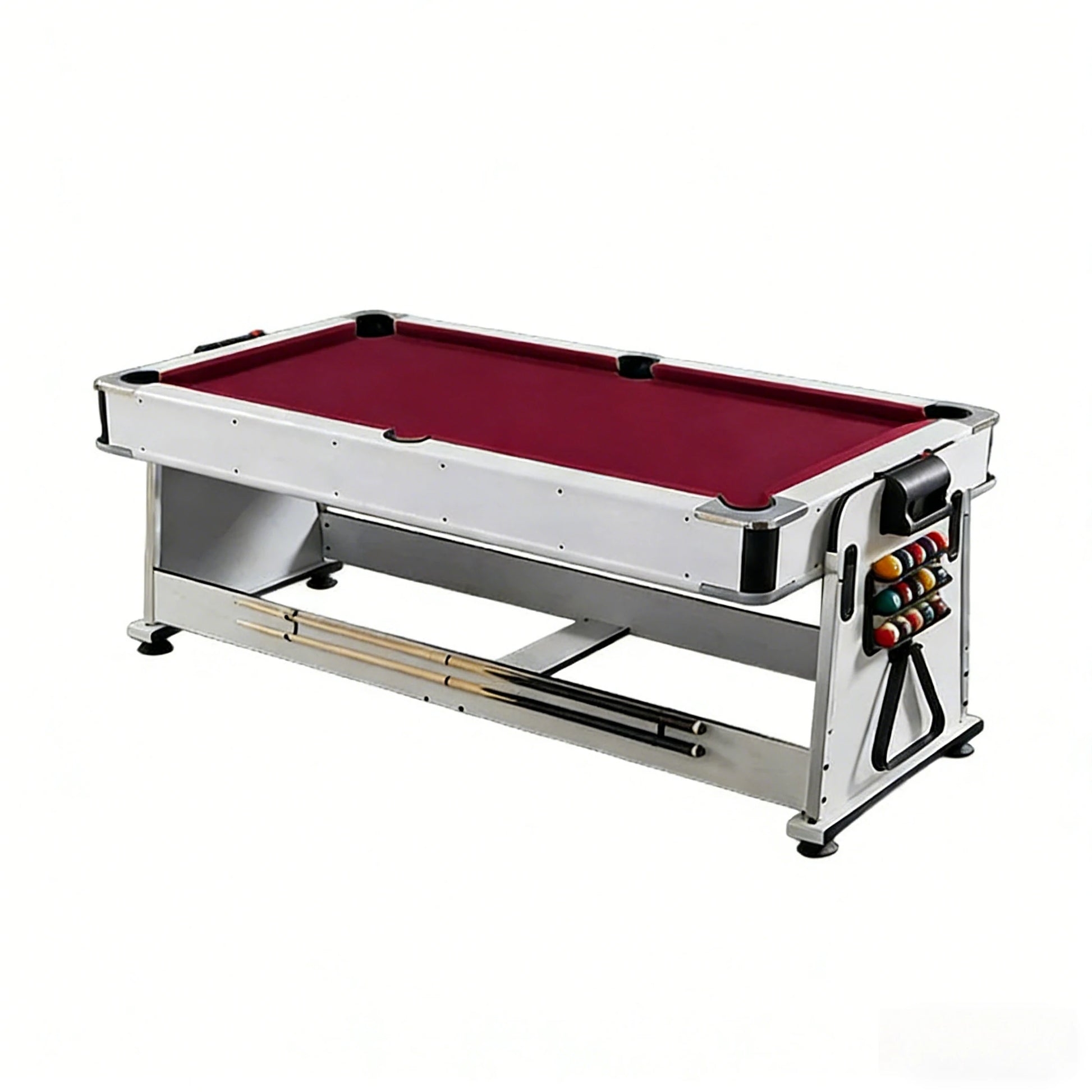 VERSA NEW 2026 UPGRADE MODEL 4-IN-1 7/8FT Convertible Table with White Frame for Air Hockey, Pool Billiards, Dining, and Table Tennis with Free Accessories - Red Felt