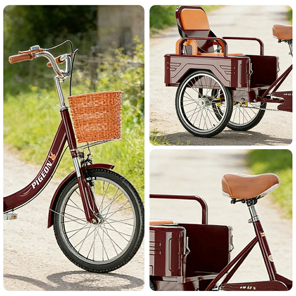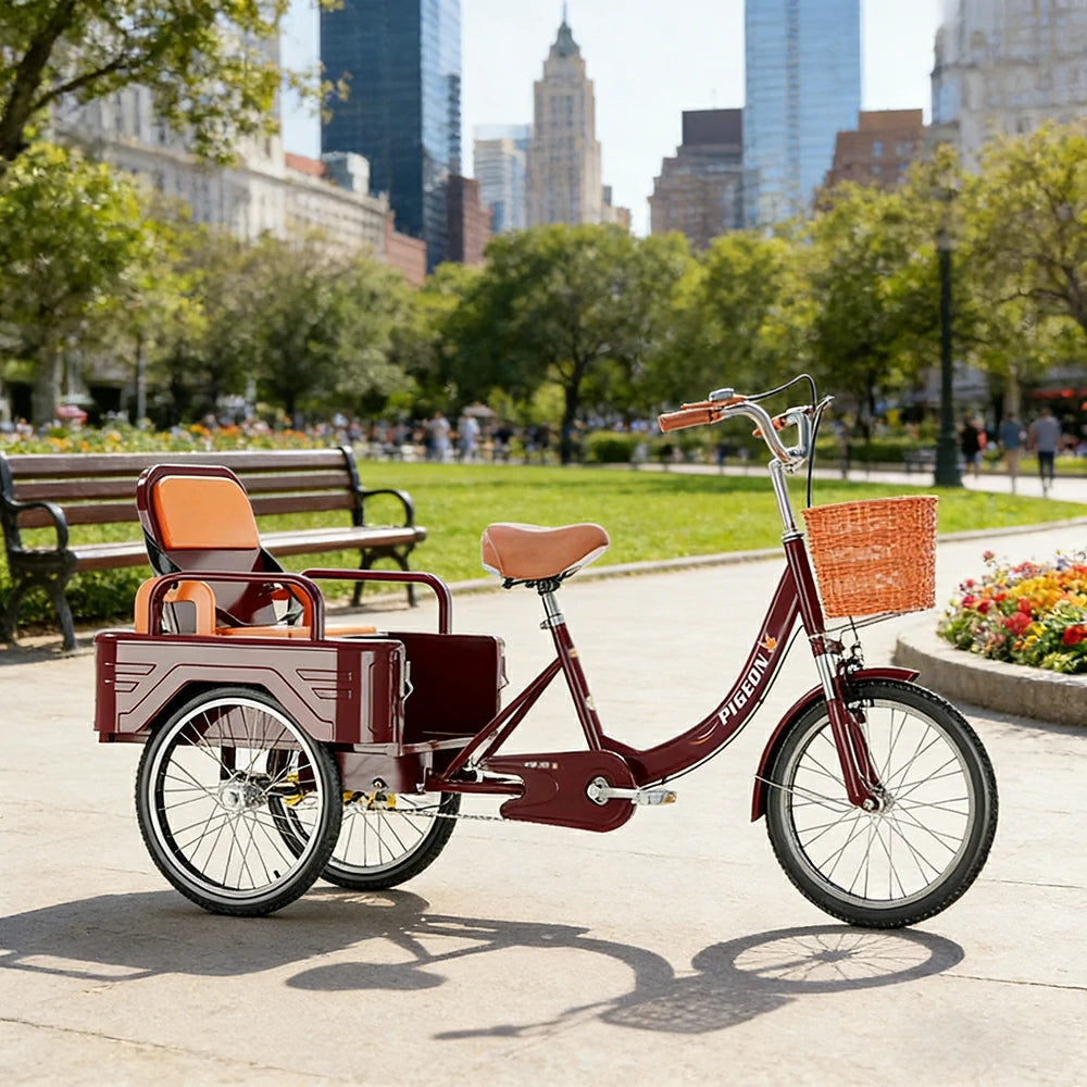 VOLTUS Tricycle High-Strength Steel Frame 300kg Max Load Dual-Shoulder Suspension Front and Rear Dual Brakes Adjustable Rear Seat Large Storage Basket - Red
