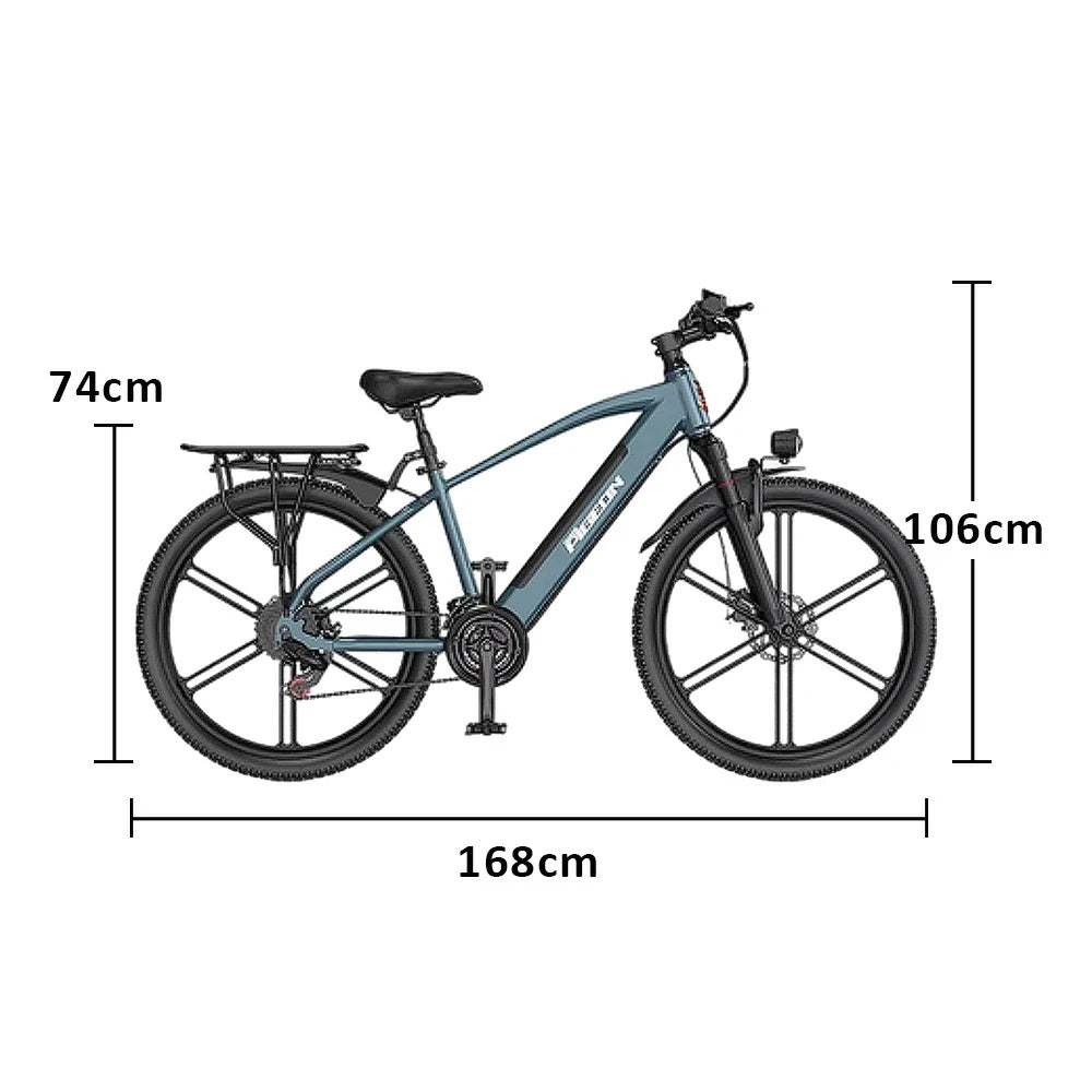 VOLTUS Electric Bike Carbon Alloy Frame Shimano 7-Speed 26-Inch Magnesium Alloy Integrated Wheels with Dual Suspension and Removable Lithium Battery - Blue