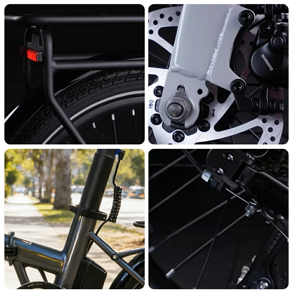 VOLTUS Electric Bike 36V 8/12AH 350W Motor, Shimano 7-Speed, High-Carbon Steel Frame, Removable Battery, LED Light, Foldable, 20-Inch Wheels - Grey