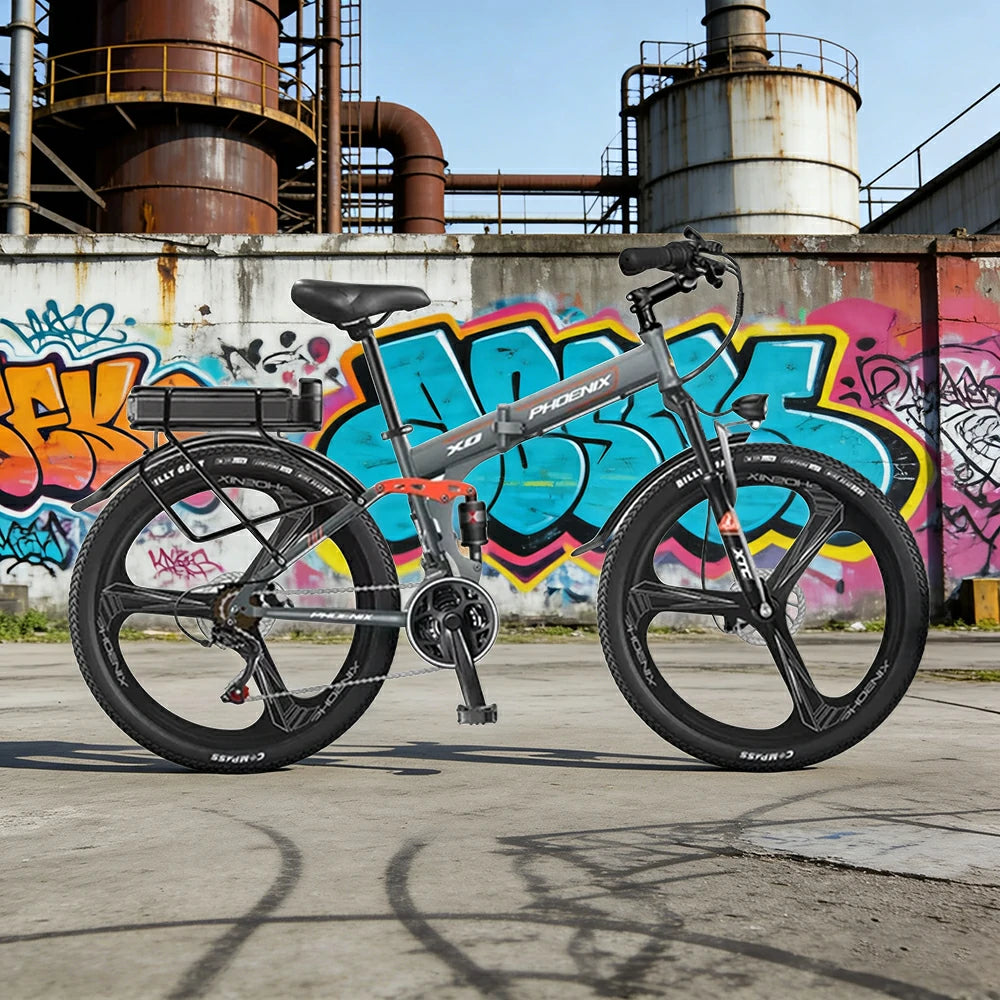 VOLTUS 26-Inch Folding Electric Bike, 48V400W Motor, 21-Speed Gears, High Carbon Steel Frame, Rear Rack Battery, Dual Suspension, One-Piece Wheels