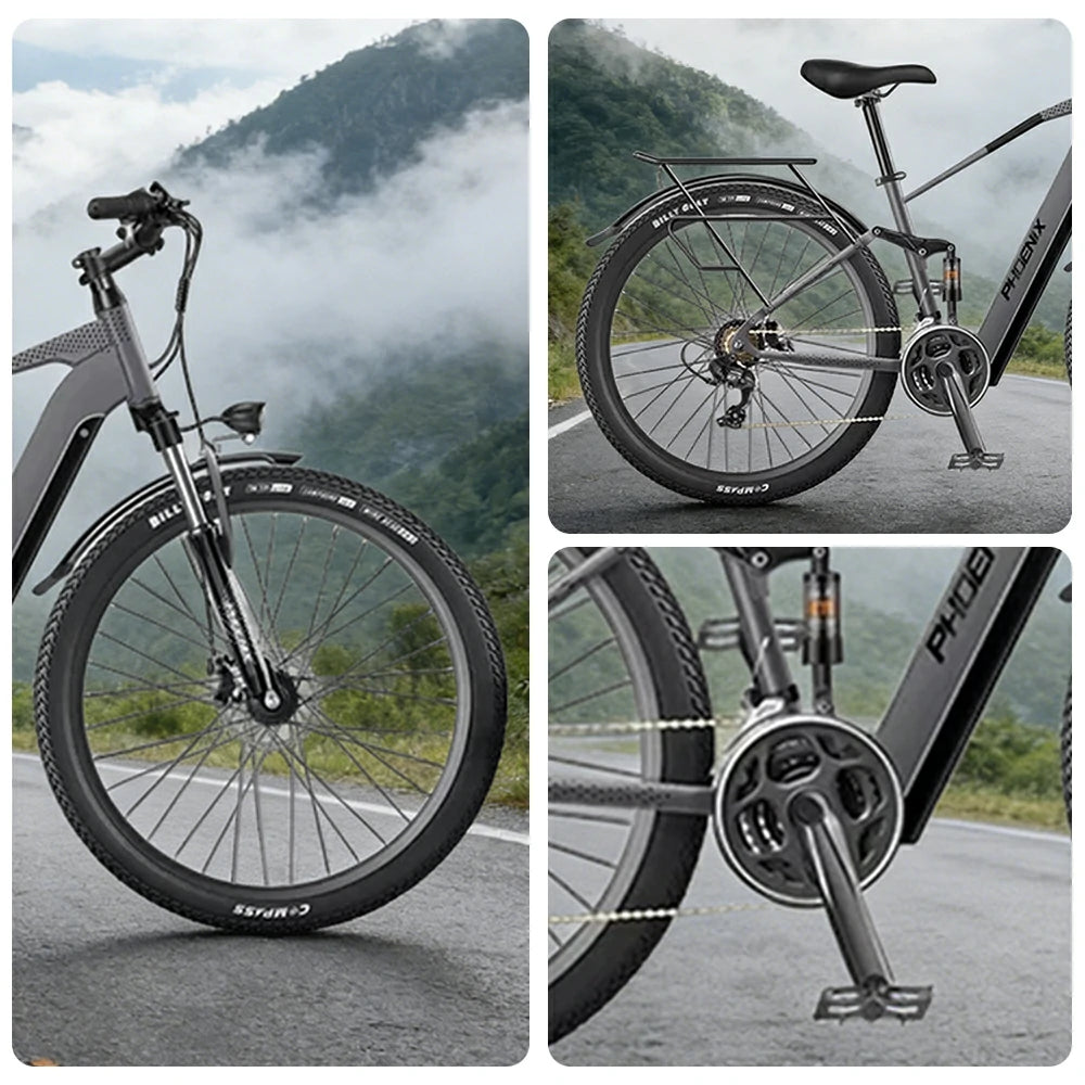 VOLTUS 26-Inch Electric Bike, 48V400W Motor, Shimano 21-Speed Gears, Aluminium Alloy Frame, Smart LCD Display, Dual Suspension, Spoked Wheels - Grey