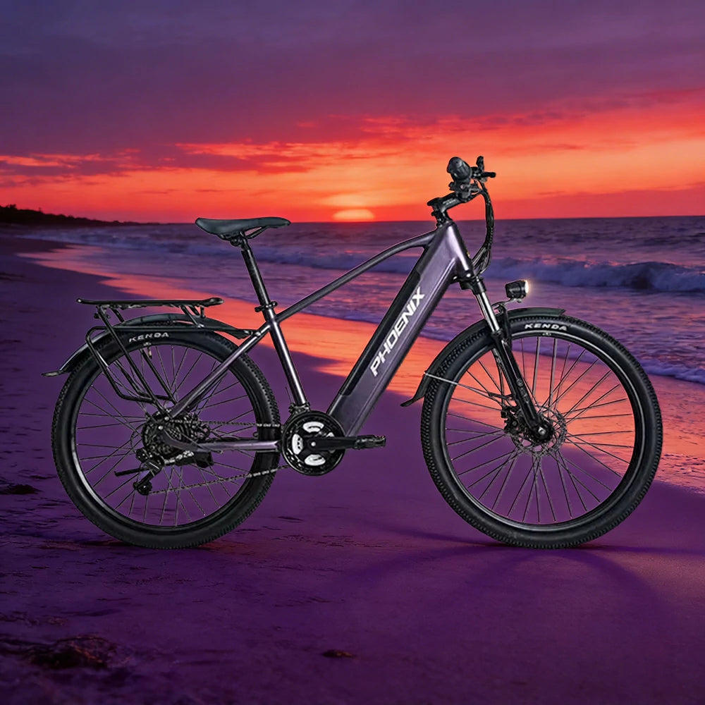 VOLTUS 26-Inch Electric Bike, 36V350W Motor, Shimano 21-Speed Gears, High Carbon Steel Frame, Removable Mid Battery, 80kg Rear Rack - Purple