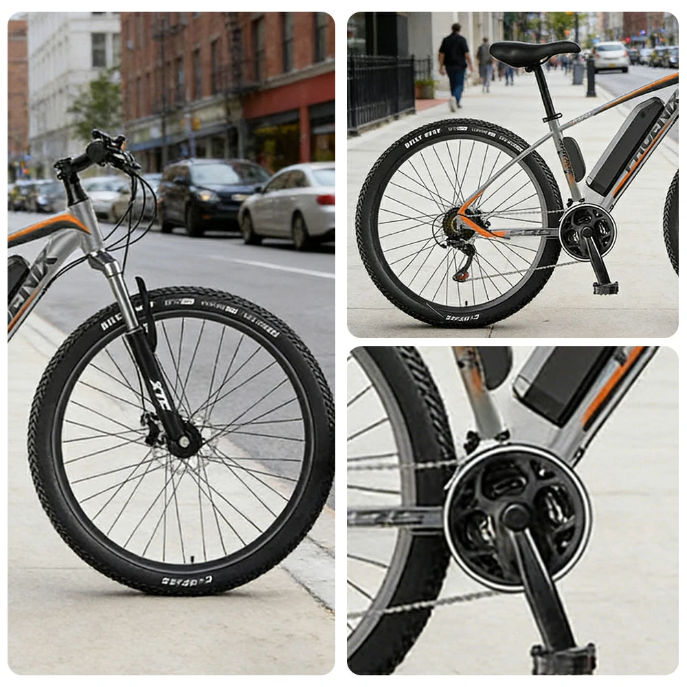 VOLTUS 26-Inch Electric Mountain Bike, 350W Brushless Motor, 21-Speed Gears, Aluminium Alloy Frame, Removable Battery, Spoked Wheels - Grey