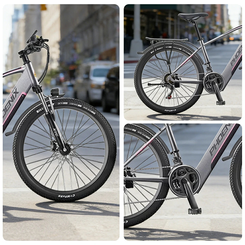 VOLTUS 26-Inch Electric Bike, 48V400W Brushless Motor, 21-Speed Gears, Aluminium Alloy Frame, Hidden Waterproof Battery, Spoked Wheels - Silver